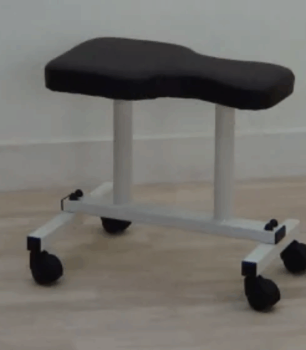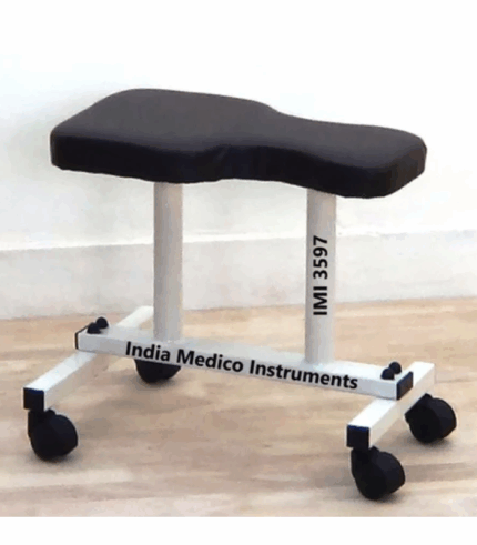 IMI 3597. Saddle Type specifically designed mobile stool is valuable when working with children, administering a mat program or other floor activity.* Construction : Square Tubular steel frame of 30mm x 30mm tube.* Mounted on 4 ball-bearing swivel casters of 50mm dia.* Seat : Special designed 45cm x 25cm foam padded Seat is covered with good quality Rexin* Height : Seat height 42cm from floor.* Finish : Powder coated finish.