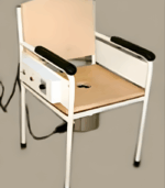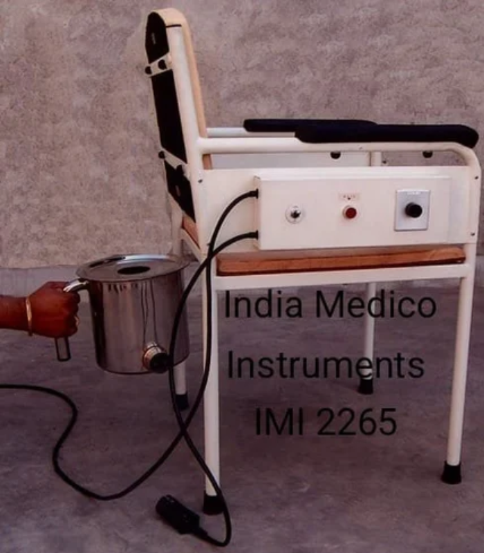 Comfortable Rectum Steam chair is constructed of tubuler pipe with powder coated finish. Specifications : * Seat : Chair is fitted with solid wood seat and with an electrical Steam Generating unit for fomentation. * Steamer : Medicinal roots or leaves can be added in to the water and can be cleaned easily. * Control Panel : Is fitted under the Arm-rest with a Heat control system & Timer to control Steam duration. * Back : The foam padded back with side arm supports adds comfort to the patient. * Power : 500watts. 220V AC.