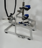IMI 2917. Ankle Rehabilitation Device provides exercise movements duplicating the complete range of Ankle movements manualy. * All the movements, Inversion, Eversion, Dorsi-flexion and Plantar-flexion & Rotation can be achieved by patient or attendent by moving the Guide Handle. * The different movements can be achived without disattaching the foot from the device. * Unit also permits a full range of load-resisting motion in all the movements.* Special designed unit, mounted on a wide base.* Adjustable Shin hold blocks are adjustable according to patient’s need.* Resistance can be applied by addition of weights to the weight holder. * Finish; Powder Coated finish.