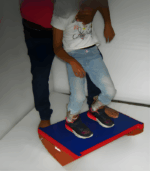 IMI-1498. Balance or Wobble board is used for balance, athletic, postural, coordination, and fall prevention training.* The First Step in Movement & Balance Retraining, Restricts Lateral Movement. * Board encourages rhythm, balance, coordination, and vestibular responses. * As children develop confidence, they can use it in kneeling or standing positions. * Platform top is padded and wooden parts are finished natural.* Foam cushioned top is covered with Rexene & provides sure footing during rocking/balance exercises.* The recessed sides provide hand holds to eliminate pinched fingers. * Top Size: 60cm x 45cm x 15cm high.