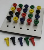 IMI 1557. Board measures an individual’s basic level of function in the area of Color identification / counting / grouping / lacing and stacking with movement of fingers, hand and arm. * Construction: Square laminated board have 25 holes to hold pegs.* Size; Board is of 30cm x 30cm long.* Pegs: Twenty Five (25) solid plastic pegs with a through hole and recess in top for stacking.* Lace; One long Lace is provided to lace the Pegs for fine motor training.* Finish; Smoothly finished Pegs are provided in five different bright colors.