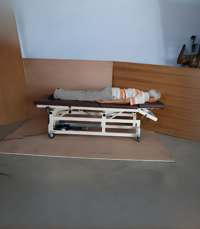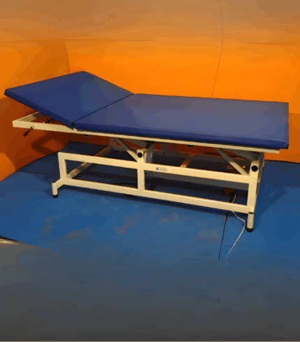 Variable height, Three section table is suitable for Examination, Treatments, including Manipulation. Both ends elevates so that the back or legs can be raised without turning the patient. Top adjusts in Height for Sit-to-Stand treatments & an easy access & Transfer of patients from Wheelchairs.
