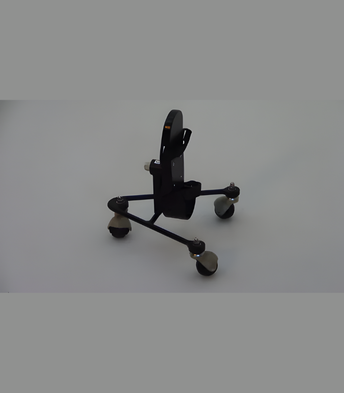 Powder coated, steel rod fabricated skate, fitted with three free movement casters & an aluminum foot hold with straps for hip exercises. Can be used on the exercise board.