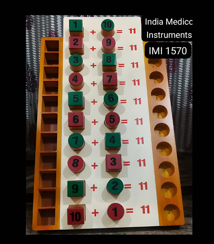 IMI 1570. Combines the manipulative experiences of a Pegboard with practice in Hand-Eye coordination, improves shoulder ROM and assists the development of grasp strength & tolerance. The mathematical puzzle creates interest and provide learning opportunity. 50mm thick and 150mm long, 10 Round and 10 Square pegs are easy to hold and place. Each peg is numbered & the client places the pegs in holes to solve the math puzzle. The peg board can be hanged on wall or placed on a table.
