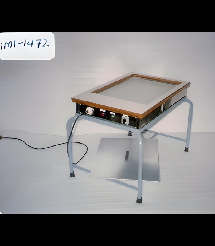 Recreation tray for patients to draw or write on wax. The stainless steel tray is 24″ long x 18″ wide x 2″ deep with wax melting heaters for melting the wax after play and is fitted with thermostate.Mounted on a tubular stand.Complete with carving tools set.